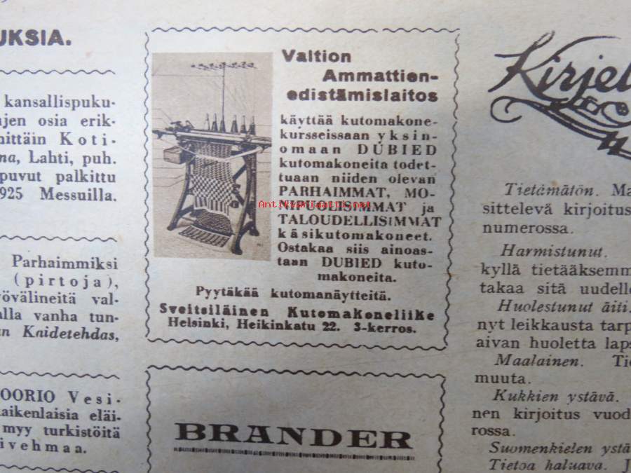 | Saatavilla | 1 kpl | | Julkaisuvuosi | 1929 | | Kunto | K2 | | Sidonta/painoasu | Lehti | | Kielet | Suomi |