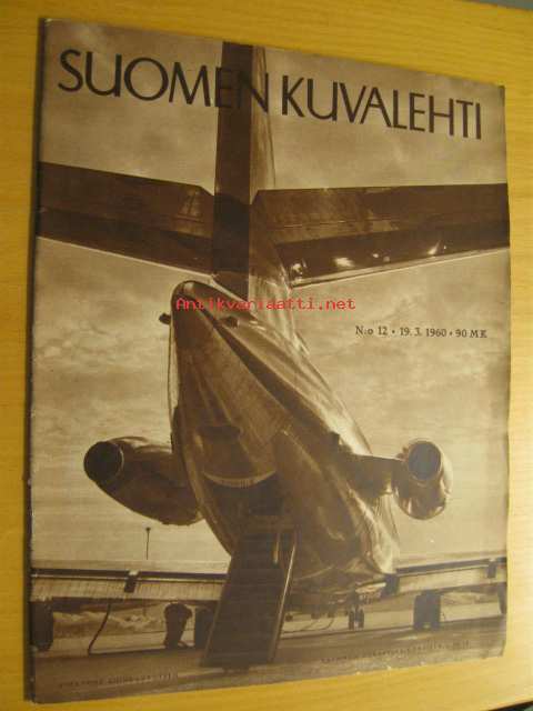 Suomen Kuvalehti 1960 nr 12, Maaliskuu 1960 ajankuvaa. ( 19.3.1960) Kannessa Aeron ensimmäinen suihkukone, josta myös artikkeli kuvineen lehdessä. Artikkelissa mm. Lapuan piispa Eero Lehtinen. Salpausselkä 1960 artikkeli kuvineen mm Veikko Kankkonen, Arto Tiainen) Pääministeri Sukselainen kaukomailla artikkeli kuvineen.