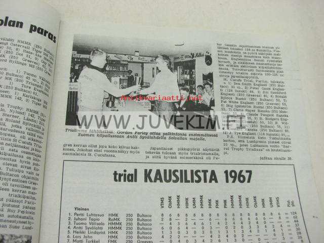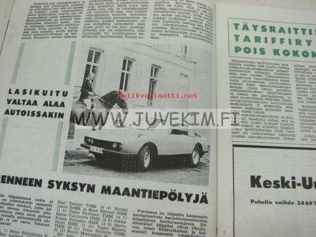 | Saatavilla | 2 kpl | | Julkaisuvuosi | 1967 | | Sivuja | 30 | | Kunto | K2 | | Sidonta/painoasu | Lehti | | Kielet | Suomi |