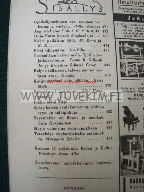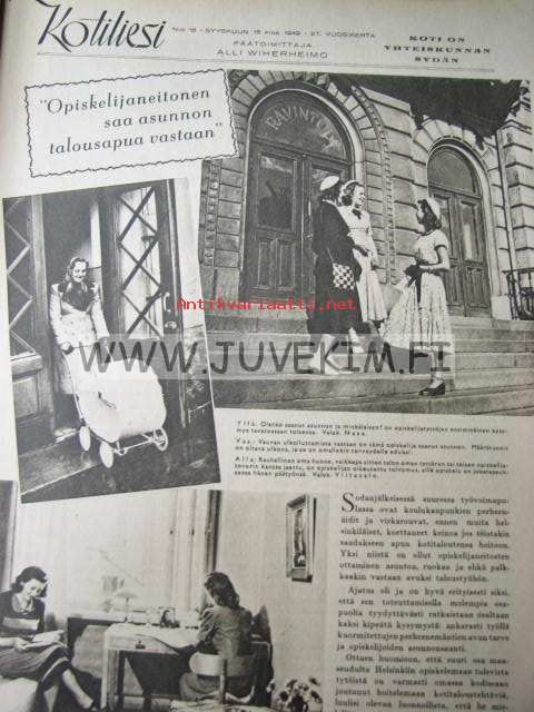 Kotiliesi 1949 nr 18 syyskuu (In memoriam Augusta Laine os Brander. Anni Karttunen, Kotka ja Fanni Nummi, Sääksmäki Valkoisen Ruusun ansiomitalin saajat. Vuoden 1949 ajankuvaa , mainoksia , ruokaohjeita ja muotia.