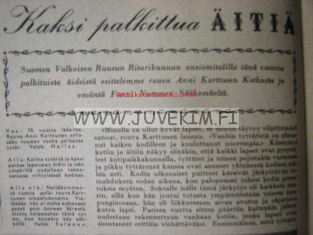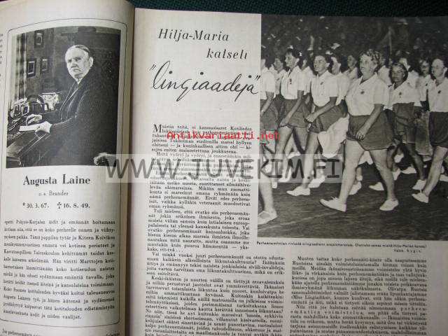 Kotiliesi 1949 nr 18 syyskuu (In memoriam Augusta Laine os Brander. Anni Karttunen, Kotka ja Fanni Nummi, Sääksmäki Valkoisen Ruusun ansiomitalin saajat.
