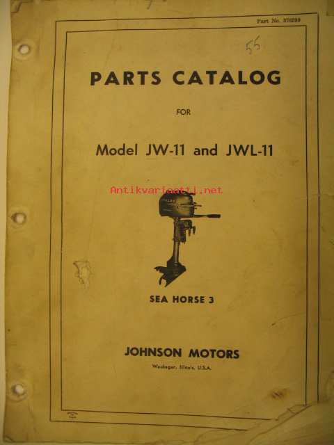 Johnson Sea Horse JW-11 and JWL-11 parts catalog 1955 -perämoottori, varaosaluettelo