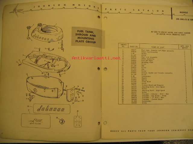 Johnson JW-JWL-12&12R 3hp 1956 parts catalog