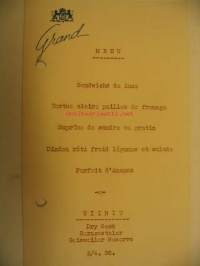 Hotelli Grand Menu agronom Eklöf 2.4.1938