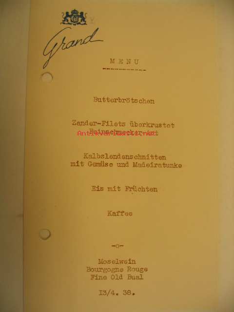 Hotelli Grand menu 13.4.1938