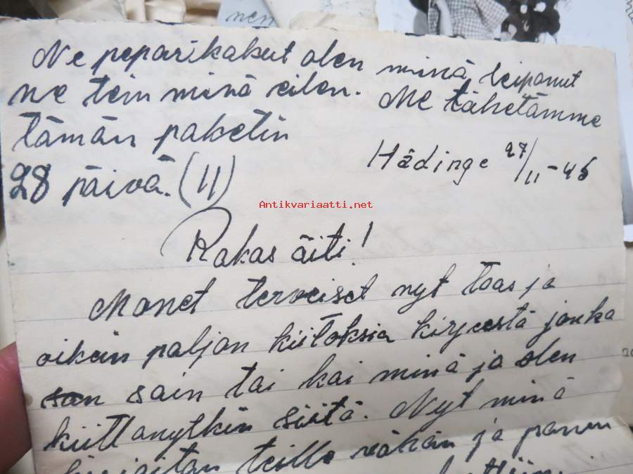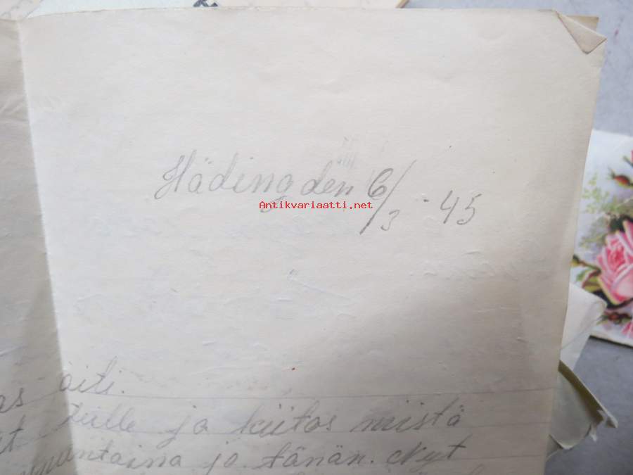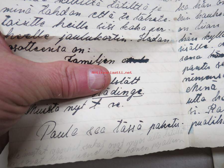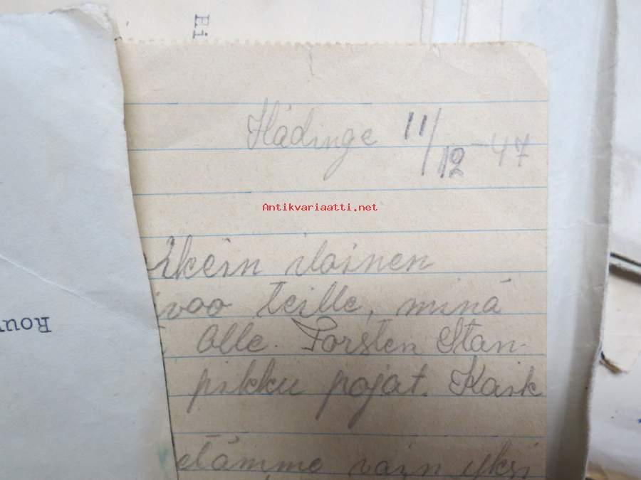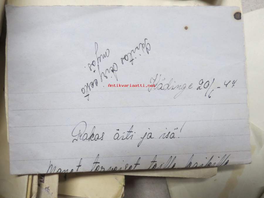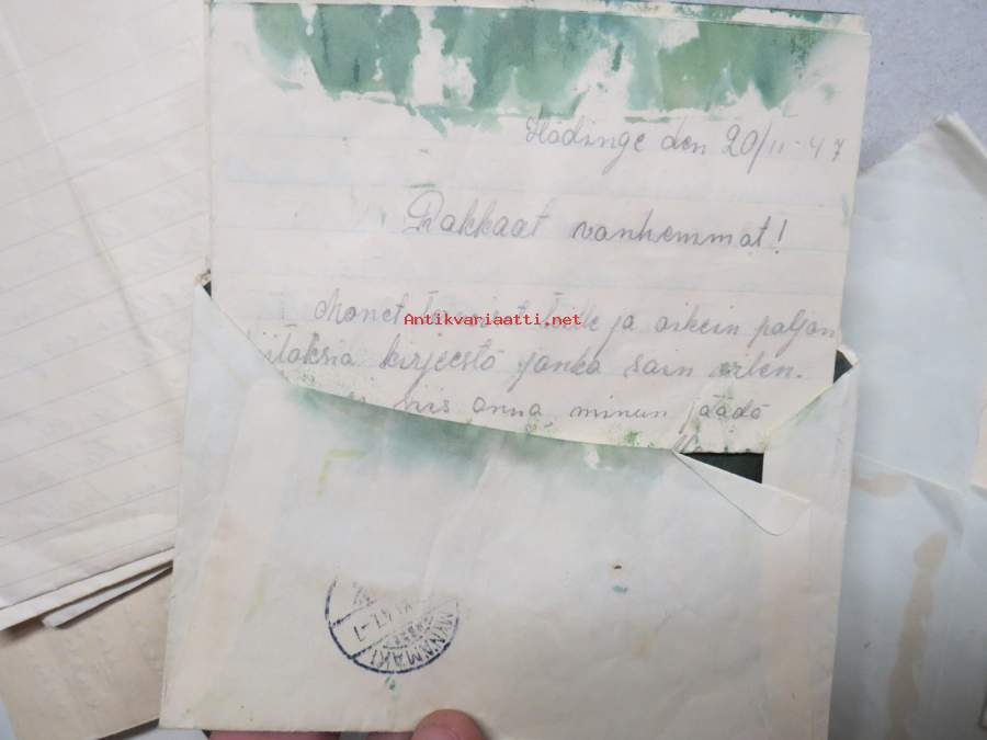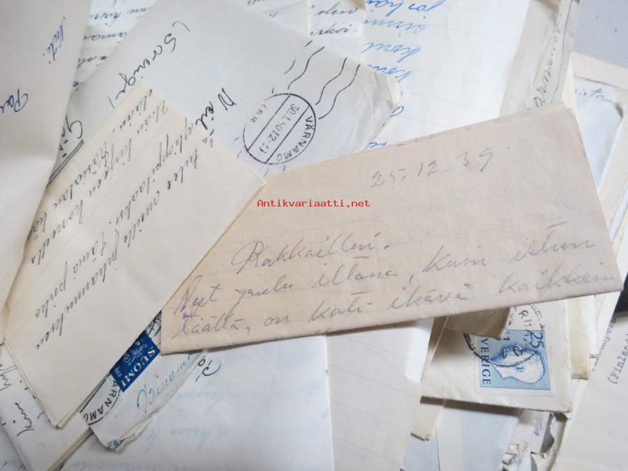 Ruotsiin lähetetyn sotalapsen kirjeitä kotiin erä runsas 100 kappaletta - mukana joitakin muita papereita, katso kuvat noin 30 kpl (nimitiedot häivytetty kuvista)