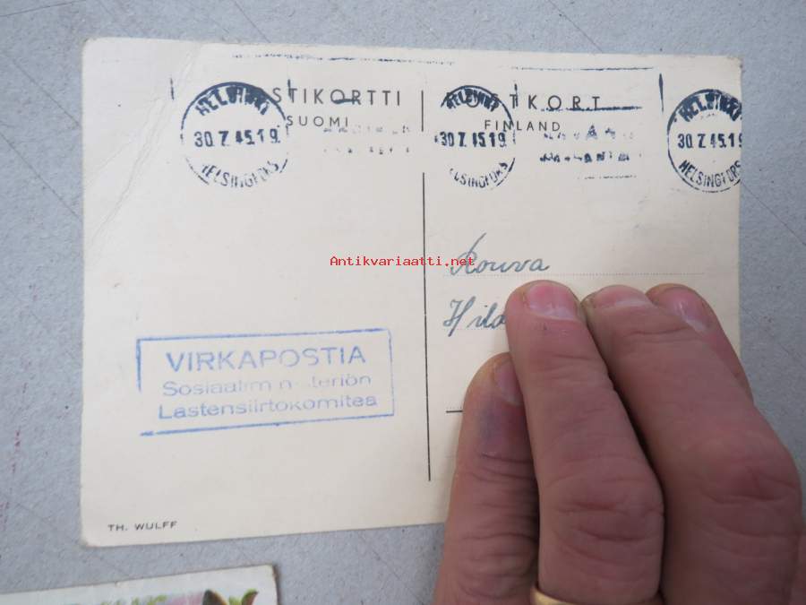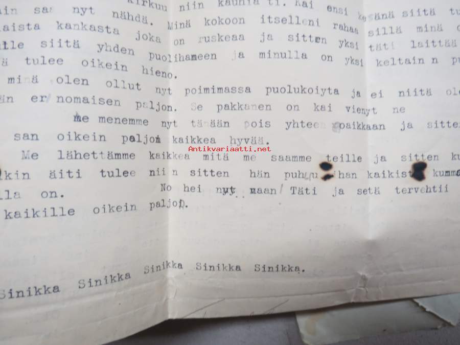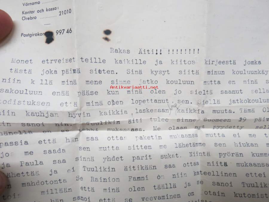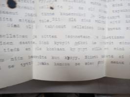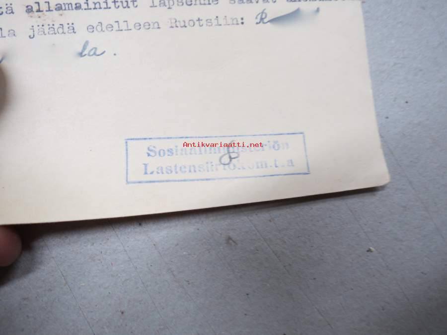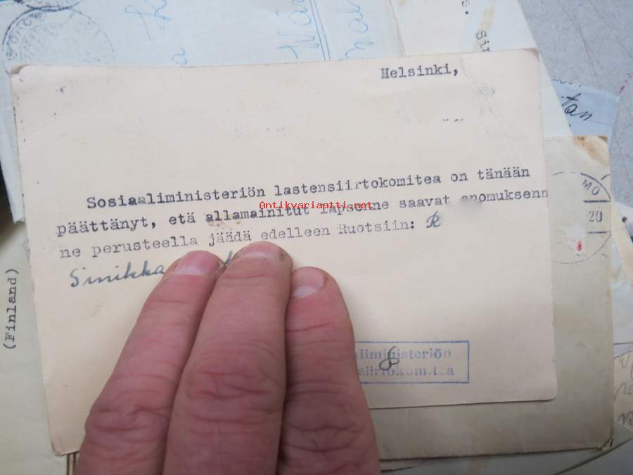 Vaikeasti löydettävää autenttista materiaalia, tämän erän paikka olisi oikeasti vaikka tutkimuskäytössä, kyseessä on kuitenkin osa kansakunnan erittäin surullista historiaa... henkilö on ollut lähetettäessä iältään sen verran isompi, että on osannut kirjoittaa ja kieli on pysynyt hallussa, kertoo myös muista lapsista ja uudesta kodistaan, jokunen Sosiaaliministeriön Lastensiirtokomitean lappu mukana.