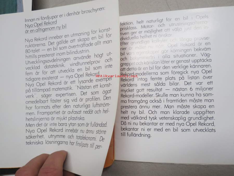 Opel Rekord 1977/78? -myyntiesite, ruotsinkielinen / sales brochure