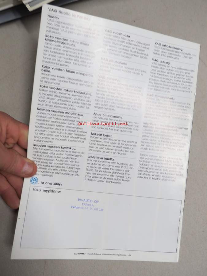 Volkswagen Jetta 1986 -myyntiesite / brochure