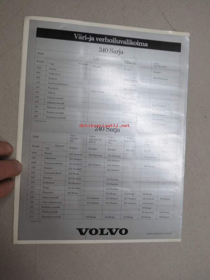 Volvo 340 / 240 - Väriot ja Verhoilu 1982 -myyntiesite / sales brochure