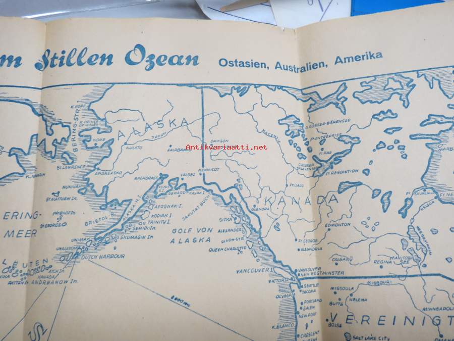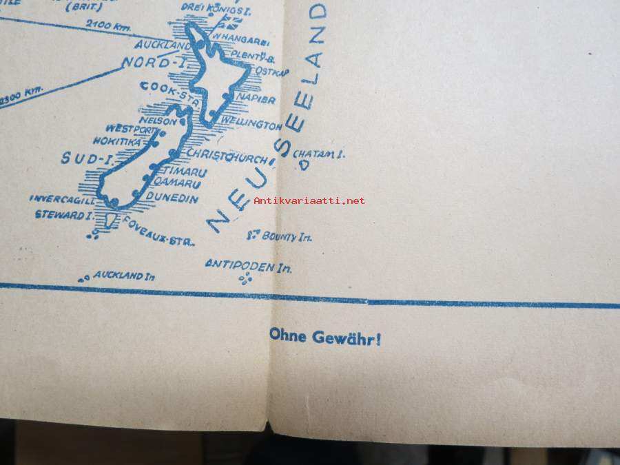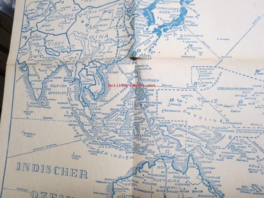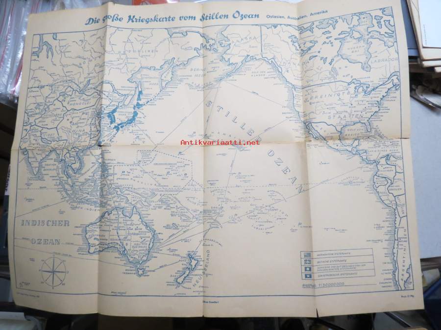 Die Grosse Kriegskarte vom Stellen Ozean -(Tyynenmeren valtiot) -saksalainen II Maailmansodan aikainen sotatilannekartta Carl Lange, Duisburg - "Ohne Gewähr", 1942