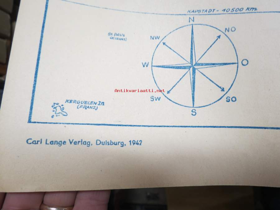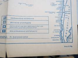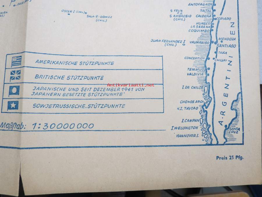 60 x 80 cm, alkuperäinen, saksalaisille myynnissä ollut kartta, hinta ollut 25 pfennigiä.