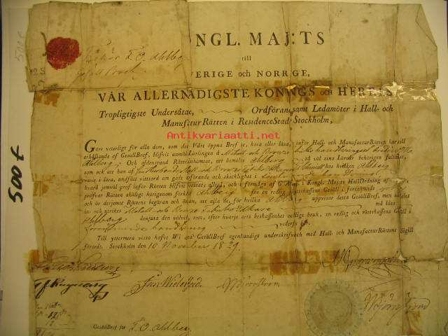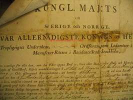 Kongl. Maj:ts till Sverige och Norrge...ordförande samt ledamöter i Hall- och Manyfactur Rätten i Recidence Staden Stockholm 10.12.1829
