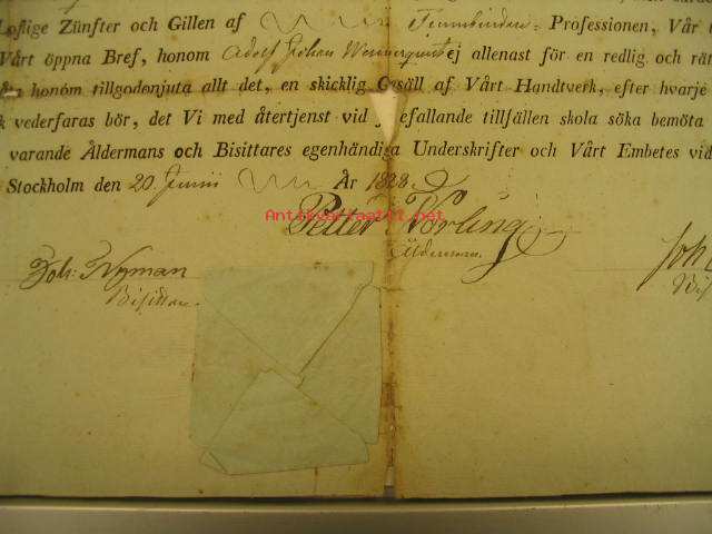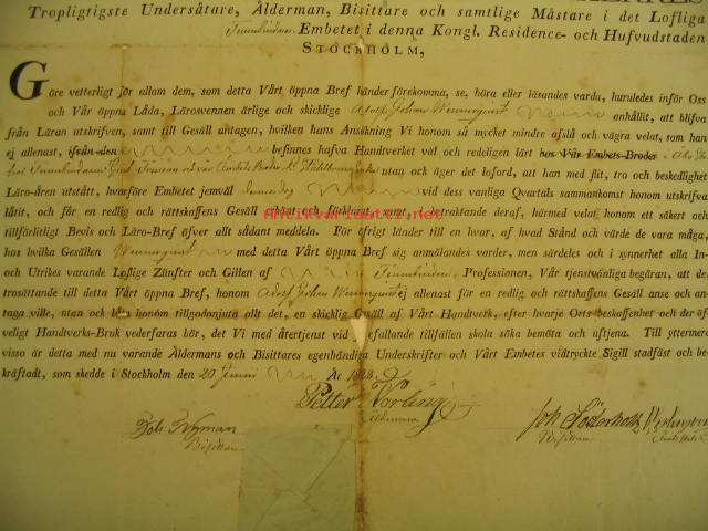 Kisällinkirja annettu Tukholmassa 1828 Adolf Johan Wennerqvistille, harjoittelun hän on kuitenkin suorittanut Suomessa ja Turussa tynnyrintekijä Gustaf Frimanin ja L.Ståhlbomin lesken luona. Ammattikuntalaitoksen kisällinkirja tosiaan kuitenkin annettu Tukholmasta. Lieneekö poliittinen kannanotto aikanaan vai eikö suomalainen ammattikuntalaitos toiminut uuden Venäjän vallan aikana. Joka tapauksessa mielenkiintoinen asiakirja ja yksityisissä käsissä tälläiset dokumentit ovat harvinaisia.