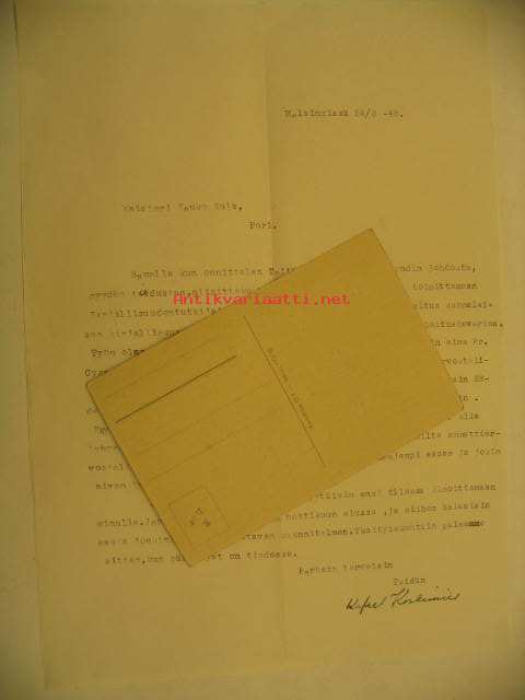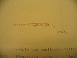 1948Rafael Koskimies tiedustelee maisteri Kauko Kulan (merkittävä kirja-arvostelija) halukkuutta toimittaa erästä artikkelia.