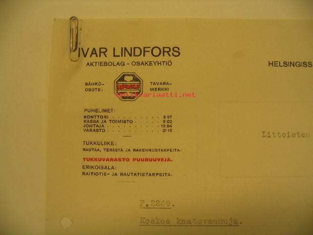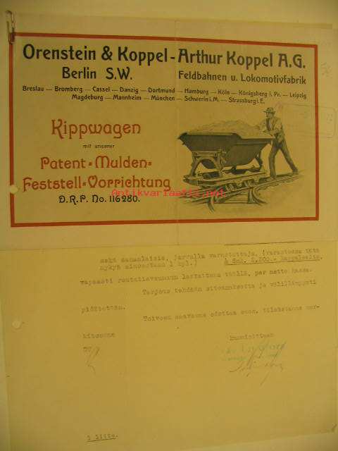 Ivar Linfors / Orenstein & Koppel asiakirja 2.3.1922