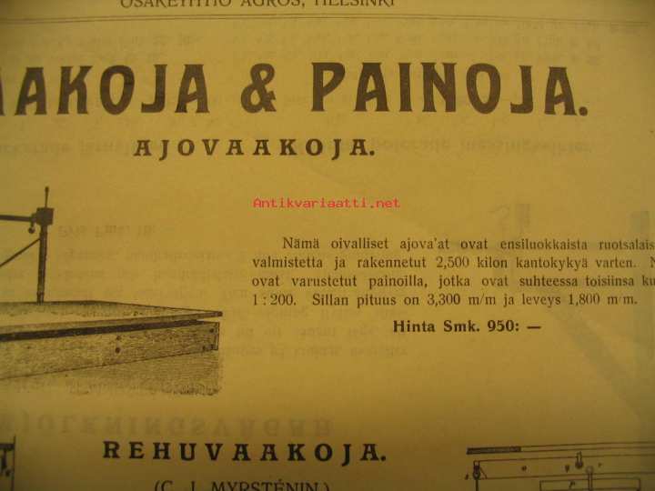 Vaakoja & painoja Agros-esite v. 1910