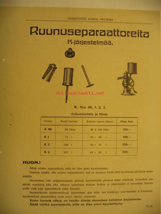 Agros Oy, 19102-puolinen, toinen puoli ruotsiksi.