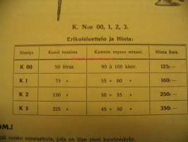 | Saatavilla | 1 kpl | | Julkaisuvuosi | 1910 | | Sivuja | 2 | | Kunto | K3 | | Kielet | Suomi |