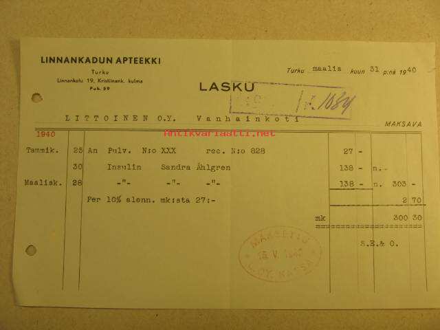 | Saatavilla | 1 kpl | | Julkaisuvuosi | 1940 | | Sivuja | 1 | | Kunto | K3 | | Kielet | Suomi |