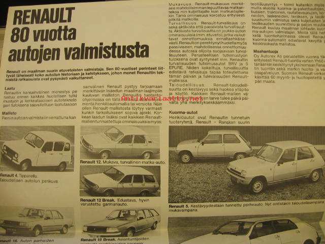 Autorex, 1979Tabloidkokoinen esitelehti, Renault 5, 18, 80 vuotta Renault autoja, Renault F1 V6 Turbo.