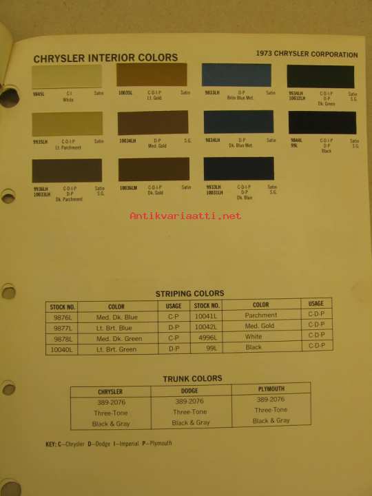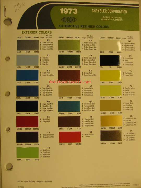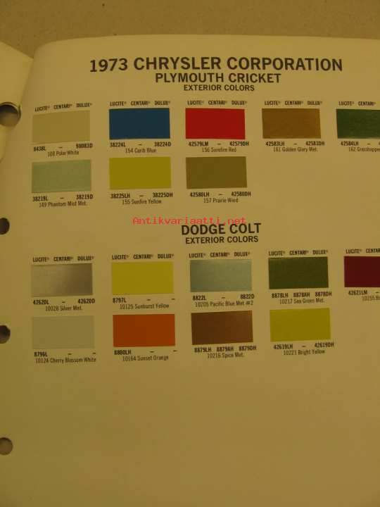 Chrysler värimallit 1973