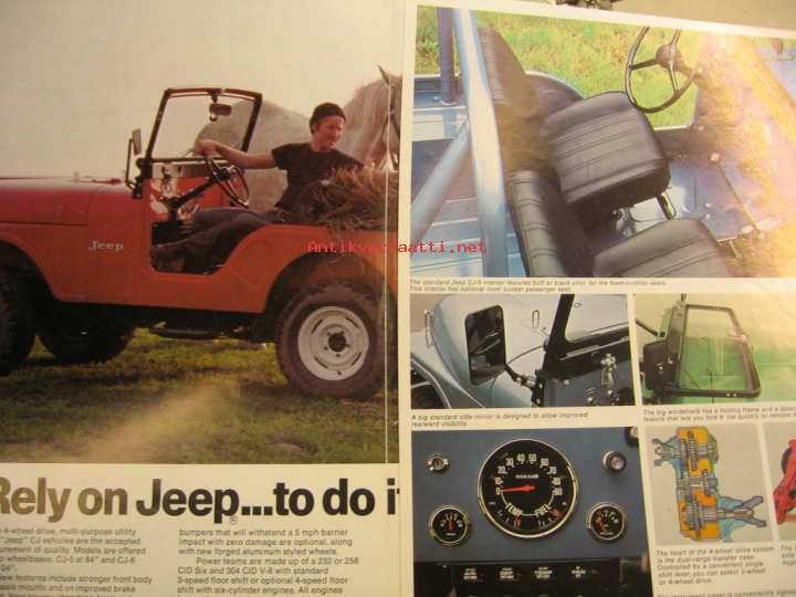 Jeep International Corporation, 19Noin 21 x 28 cm taittoesite, ei selvästi merkittyä paino- eikä mallivuotta, painokoodi JIC 7451.