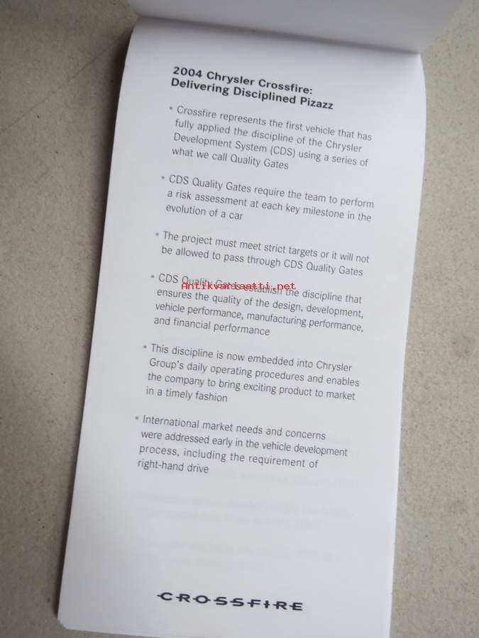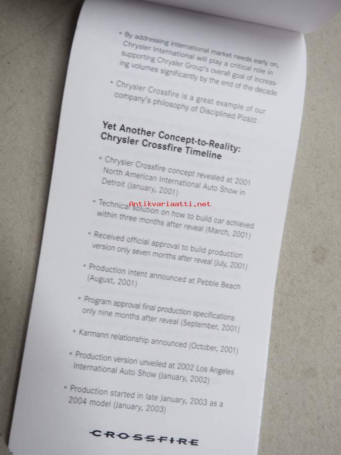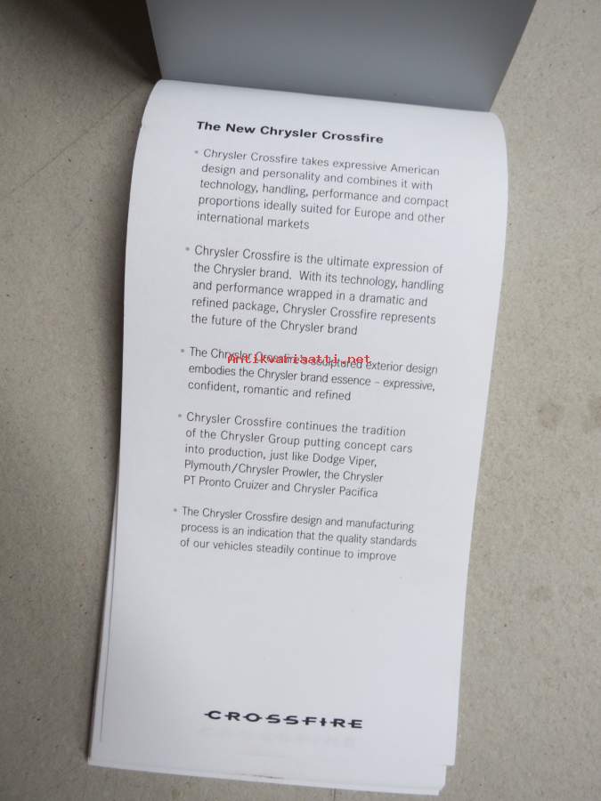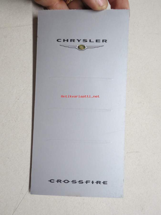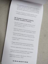 Chrysler Crossfire -muistivihko, autonäyttelyssä v. 2003 saatu mainoslahja, käyttämätön, alussa auton esittelyä, loppu tyhjiä sivuja