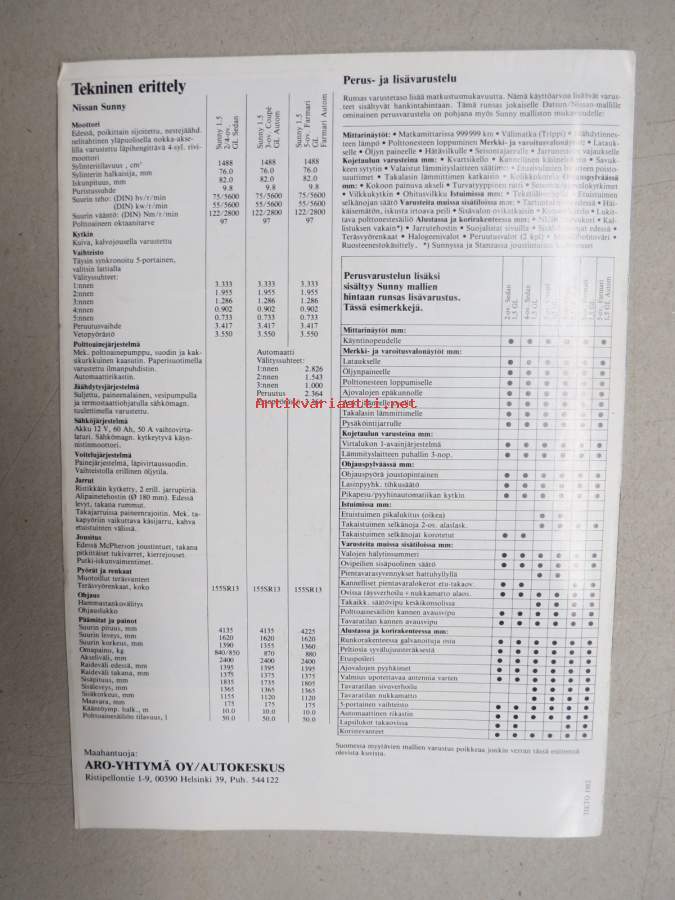 Nissan Sunny 1.5 l Sedan, Coupé, Farmari -myyntiesite / sales brochure