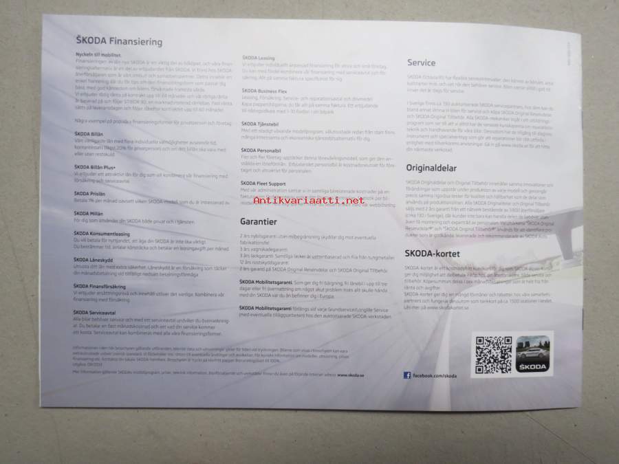 Skoda Octavia RS 2014 -myyntiesite, ruotsinkielinen / sales brochure