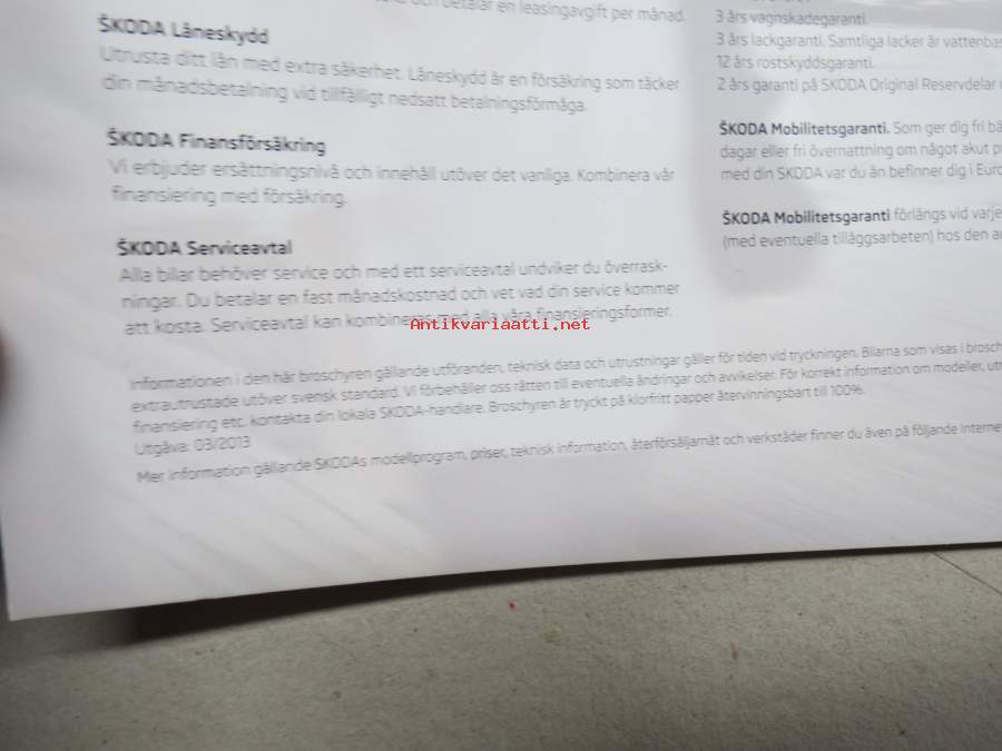 Skoda Octavia 2013 -myyntiesite, ruotsinkielinen / sales brochure