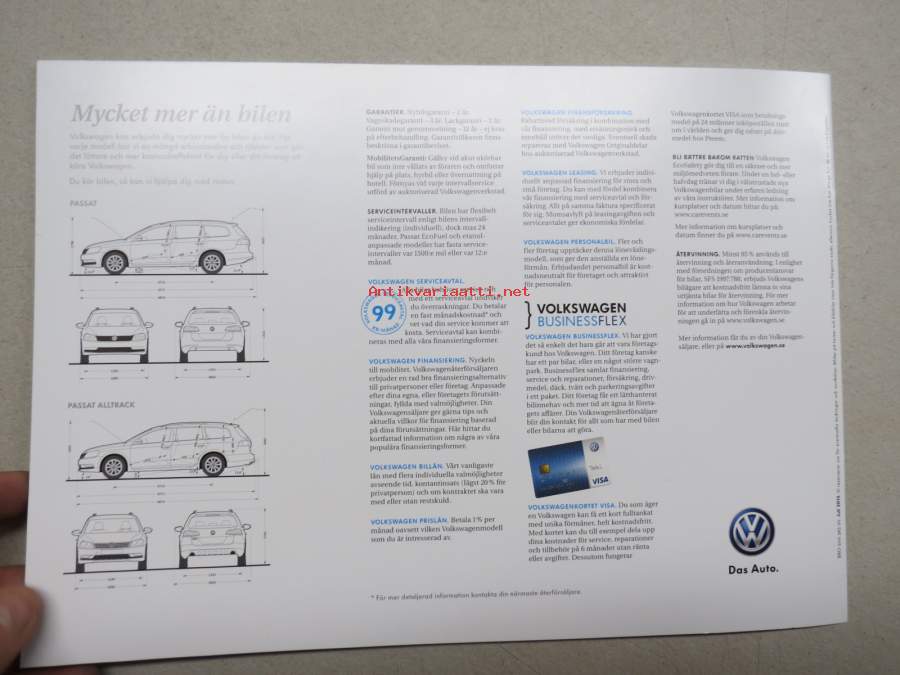 Volkswagen Passat 2014 -myyntiesite, ruotsinkielinen / sales brochure