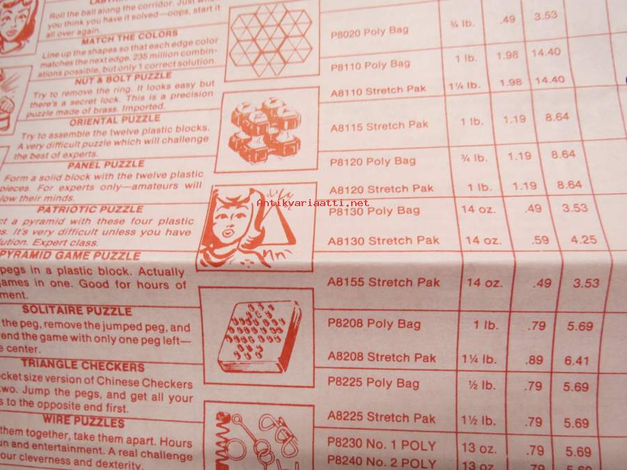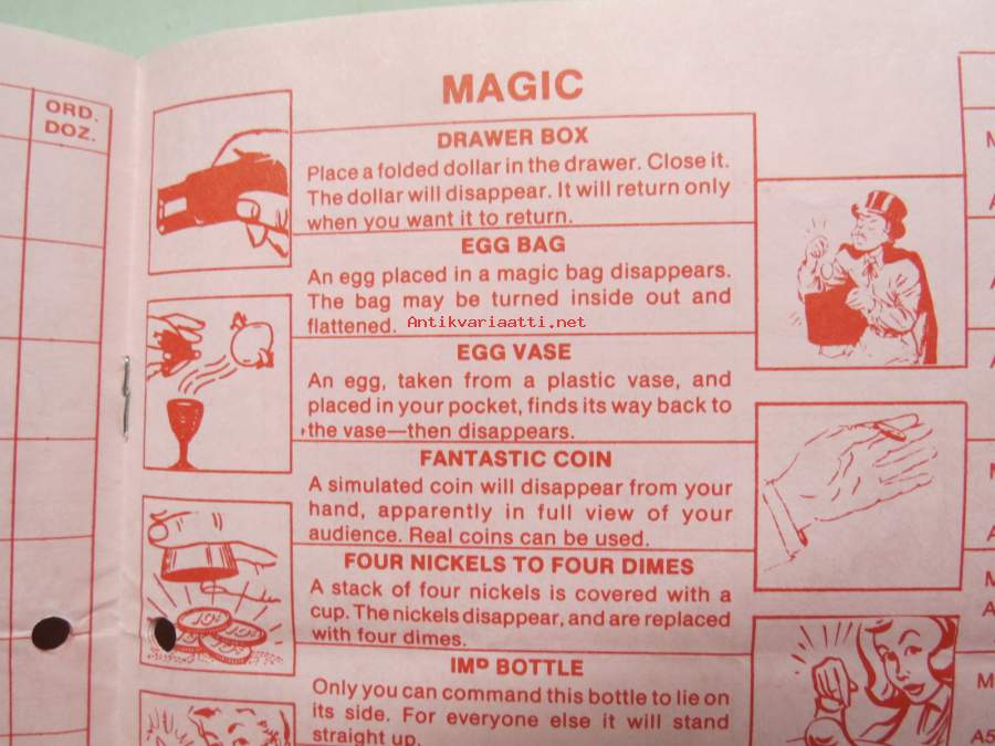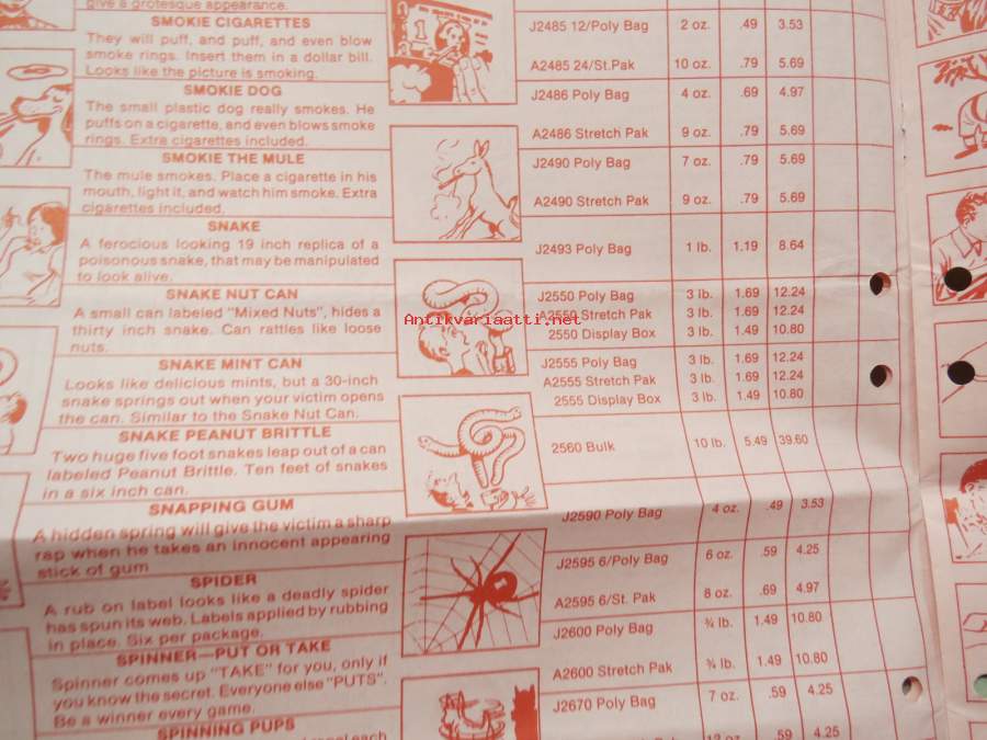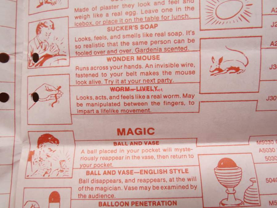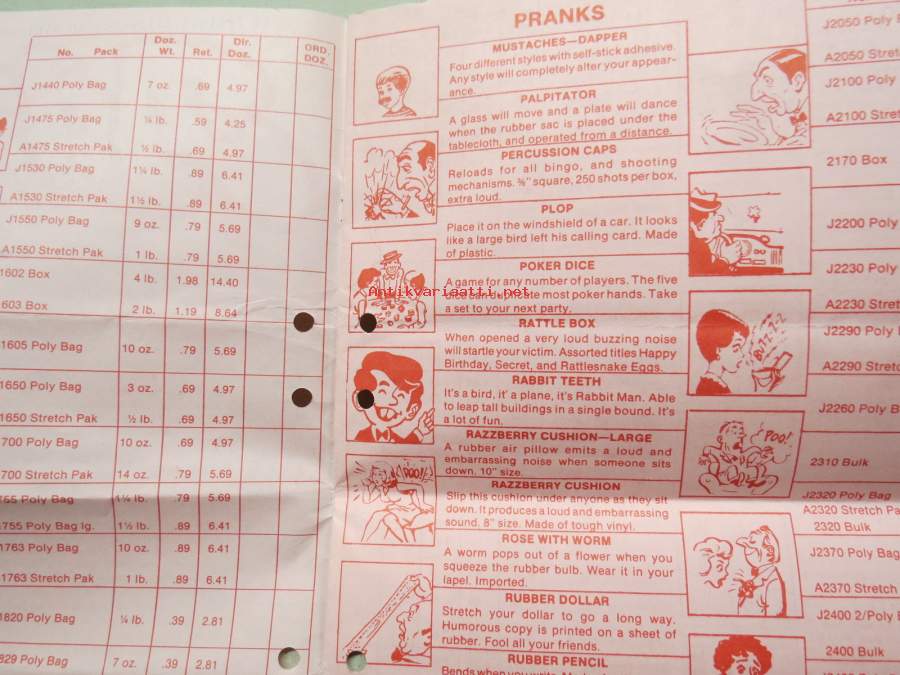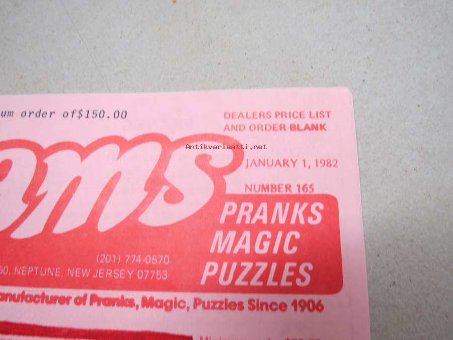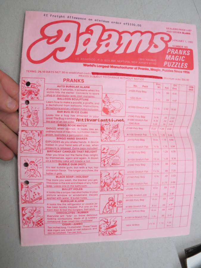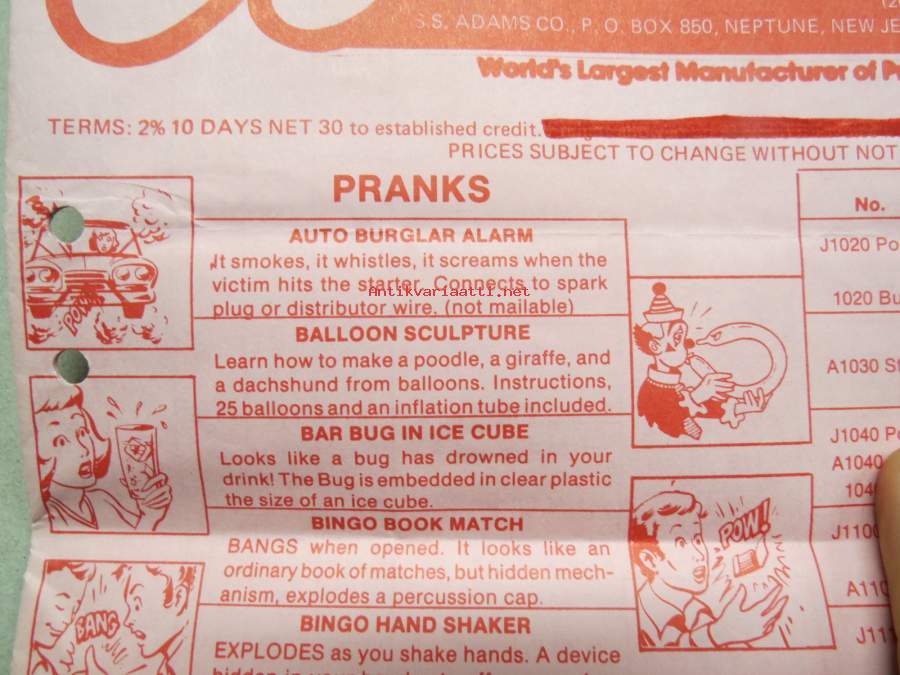 Adams pranks, magic, puzzles -pilailu-, karnevaali- ja taikatemppuvälineiden luettelo, englanninkielinen