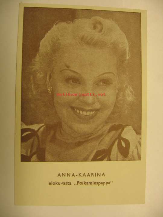 Anna-Kaarina -elokuvapostikortti, Suomen Filmiteollisuus SF elokuvasta "Poikamiespappa", Sotainvaliidit ry Filmitähti II -sarjaa