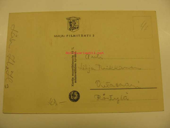 Hugo Hytönen -elokuvapostikortti, Suomen Filmiteollisuus SF elokuvasta "Rantasuon raatajat", Sotainvaliidit ry Filmitähti II -sarjaa
