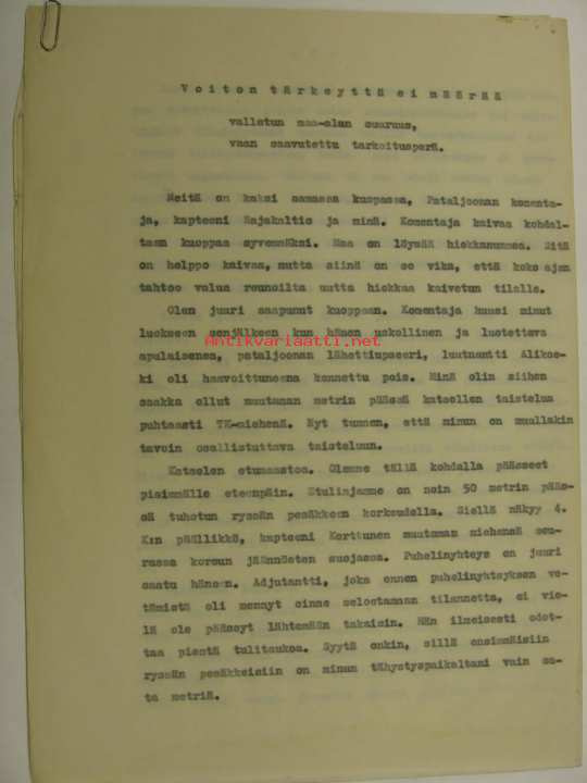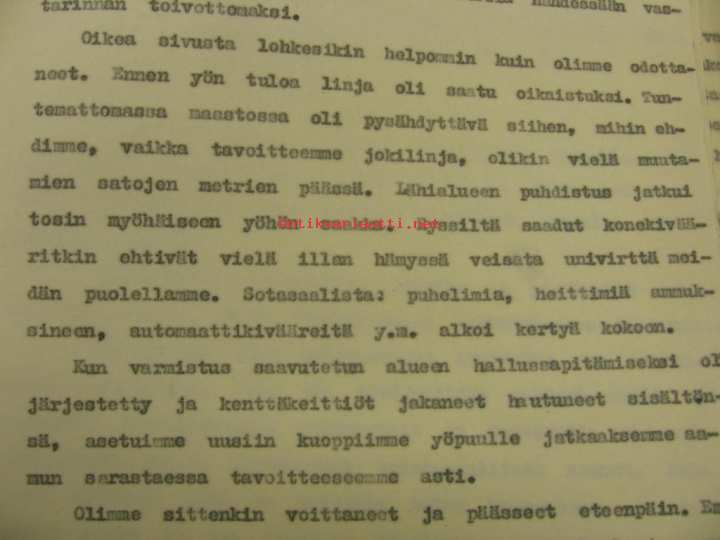 Voiton tärkeyttä ei määrää vallatun... -artikkelikäsikirjoitus jatkosota -TK-luutnantti Niilo Hentolan käsikirjoitus mitä ilmeisimmin johonkin suuremman