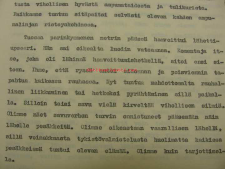 TK-luutnantti Niilo Hentolan käsikirjoitus mitä ilmeisimmin johonkin suuremman joukkosaston tai Armeijakunnan julkaisuun. Karua tositarinaa, ihme jos on annettu aikoinaan julkaista. Joukko-osastoa ei suoraan mainita, mutta nimiä sitten todella runsaasti, kaikki kohtaloineen.
