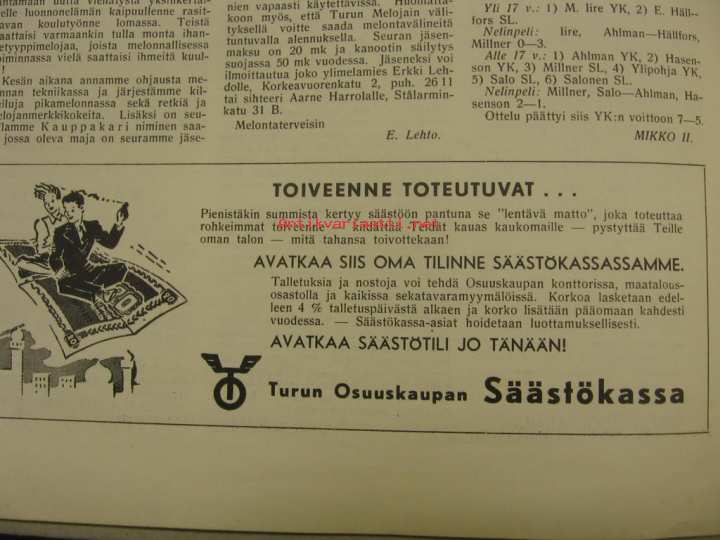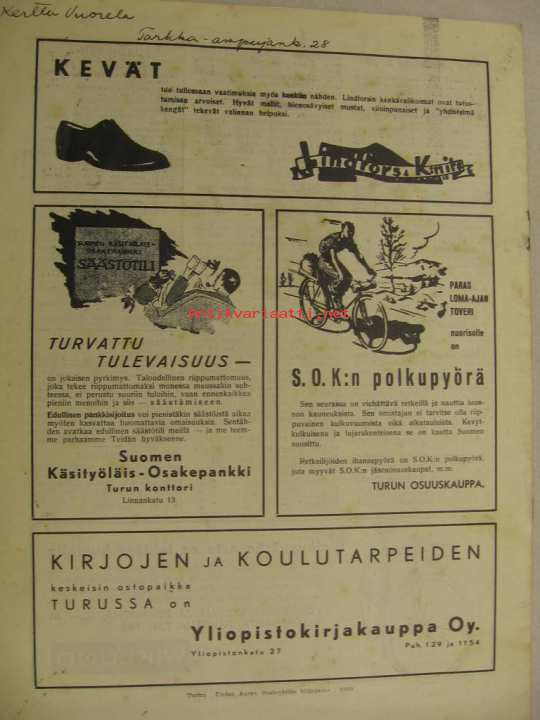 | Saatavilla | 1 kpl | | Julkaisuvuosi | 1939 | | Sivuja | 12 | | Kunto | K3 | | Kielet | Suomi |