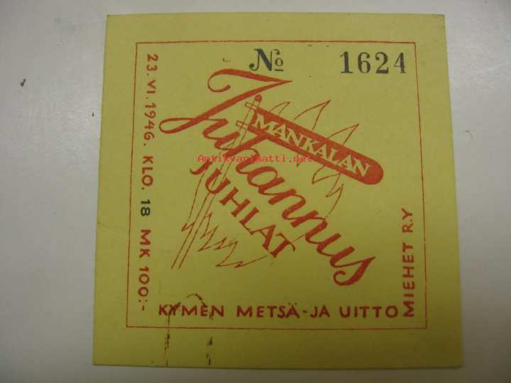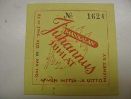 Mankalan Juhannusjuhlat 23.6.1946 -pääsylippu