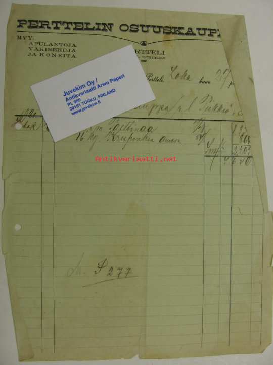 Perttelin Osuuskauppa -asiakirja 27.10 1920
