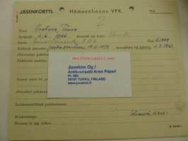 Hämeenlinnan VPK jäsenkortti Isotalo Paavo