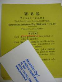 Hämeenlinnan WPK Toinen Iltama v. 1889 piletti