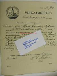 Hämeenlinnan VPK:n jäsenen Tobias Nykäsen Virkatodistus hautausavustusta varten 1931