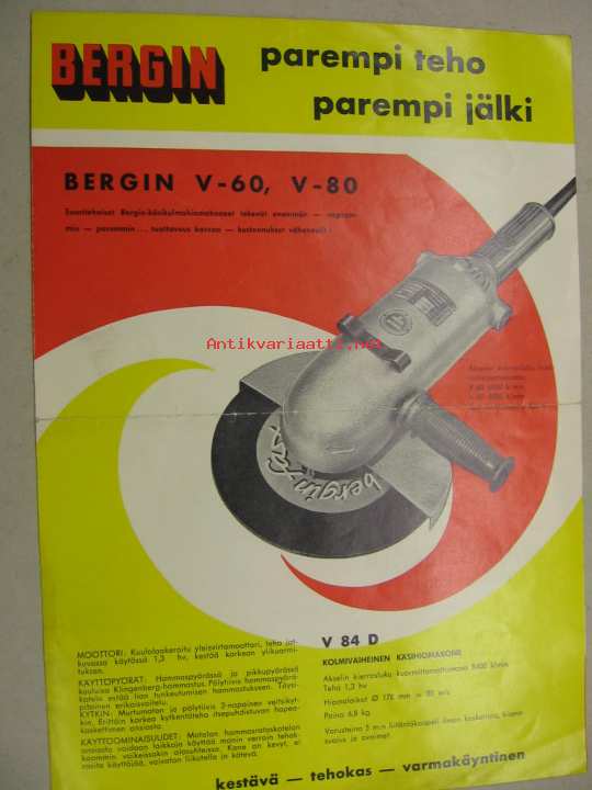 Bergin V-60 V-80 V-84 D kolmivaiheinen käsihiomakone ym. -myyntiesite