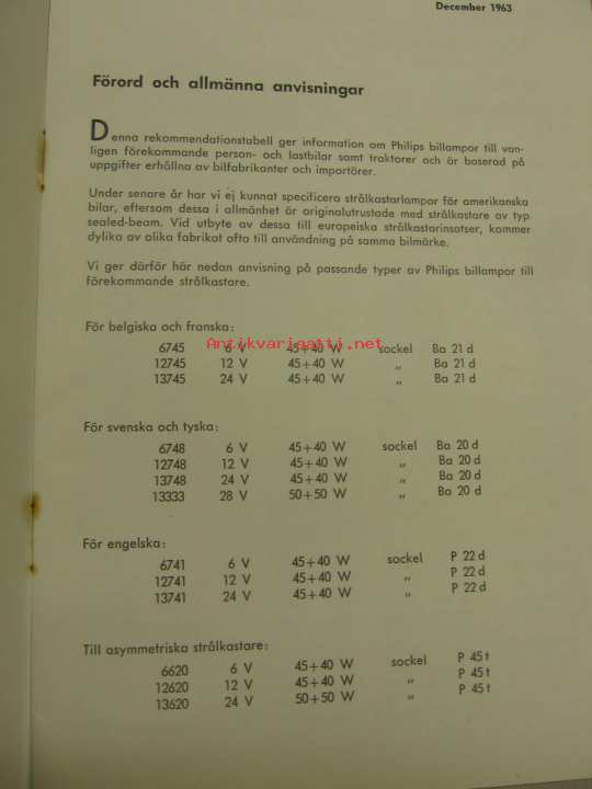 Philips billampor rekommendationstabell -suosittelutaulukko