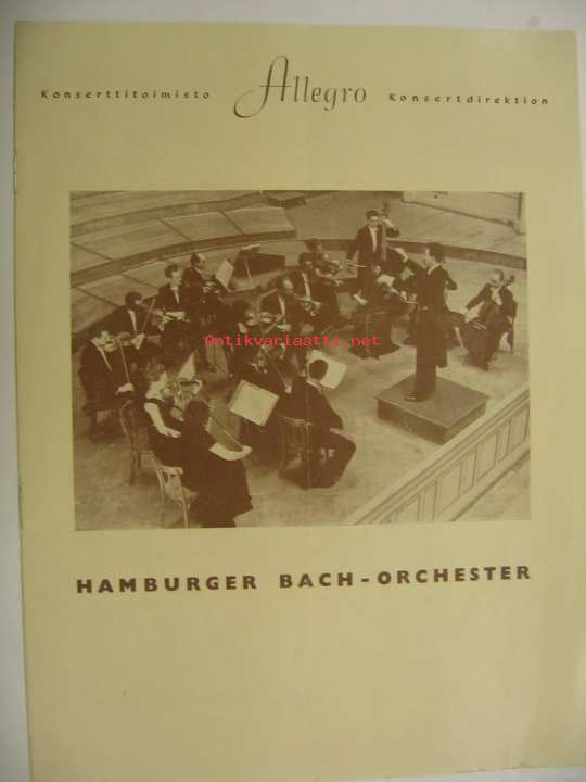 Allegro Konserttitoimisto Hamburger Bach-orchester 18.9.1959 -konserttiohjelma