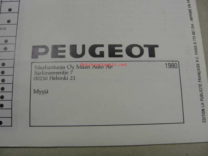 Peugeot / Maan Auto Oy, 1980A-4 kokoinen myyntiesite.