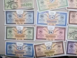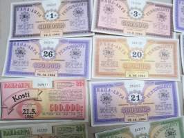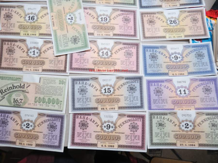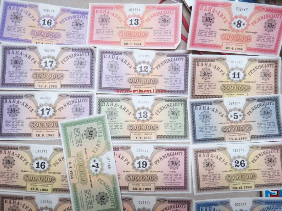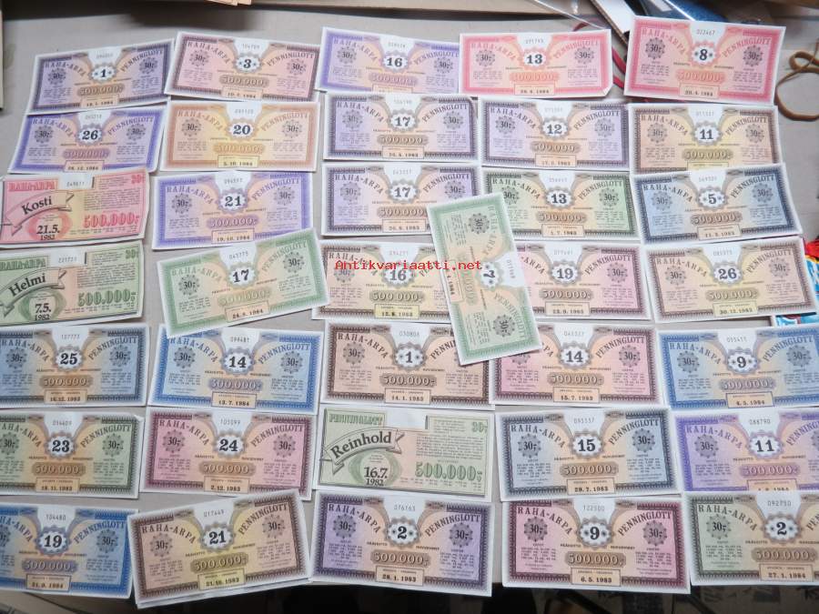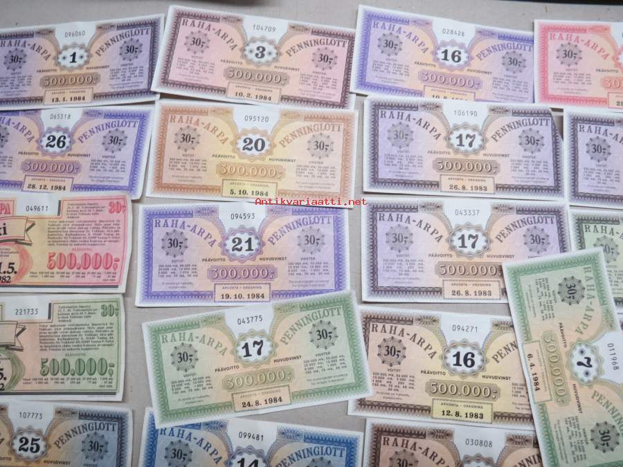 Raha-arpa - Penninglott, noin 25-30 kpl erä raha-arpoja 1980-luvun alusta