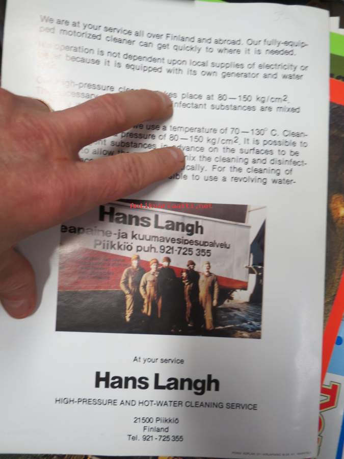 Hans Langh high-pressureand hot water cleaning service -esite 1980-luvulta