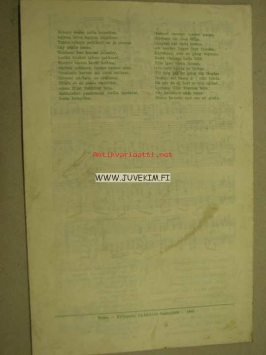 | Saatavilla | 1 kpl | | Julkaisuvuosi | 1946 | | Sivuja | 4 | | Kunto | K3 | | Kielet | Suomi |